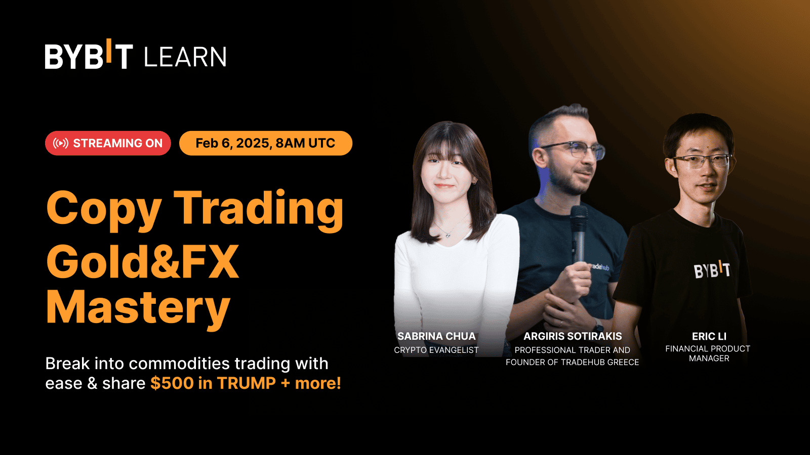 Joining the livestream on Feb 6, 2025 were two distinguished guests: Argiris Sotirakis, professional trader and founder of TradeHub Greece, and Eric Li, Financial Product Manager at Bybit. Under the moderation of Sabrina Chua, Crypto Evangelist and SEO Editor at Bybit, this episode explores Copy Trading Gold&FX Mastery.